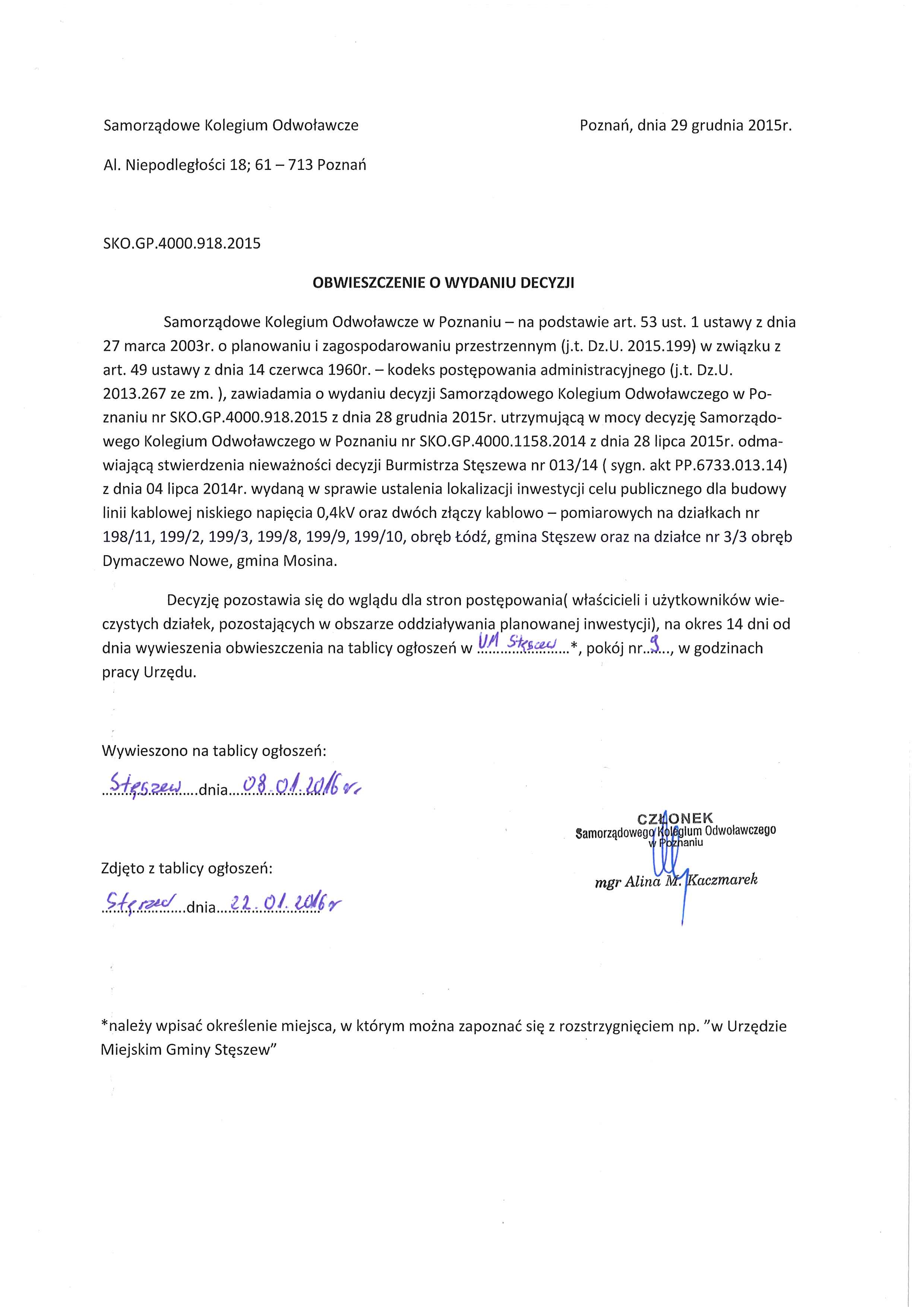 | Obwieszczenie Samorządowego Kolegium Odwoławczego |