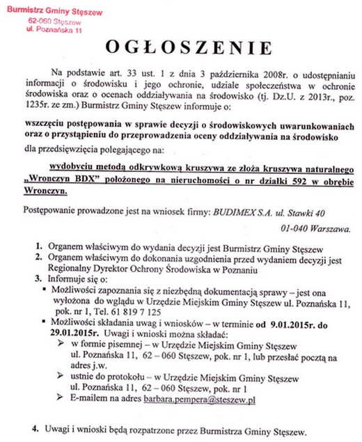Ogłoszenia o zamiarze przeprowadzenia przetargu